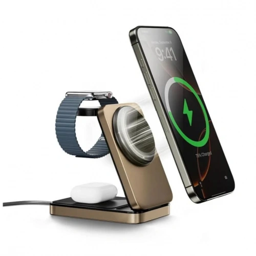 Беспроводная зарядная станция Wiwu Triple 3in1 Wireless Charger 15W Wi-W038, Gold