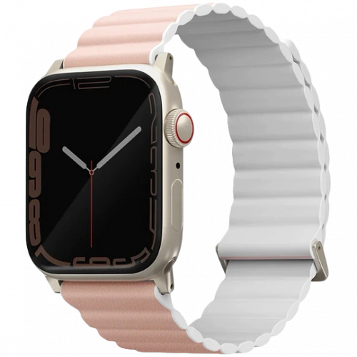 Ремешок Uniq для Apple Watch 44/45/46/49мм Revix Premium Edition Leather/Silicone, Pink/White (45MM-REVPBPNKWHT)