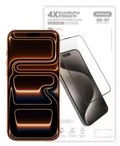 Защитное стекло SupGlass для iPhone 17 Pro Strongest Tempered Glass 3D SG-01, Чёрное