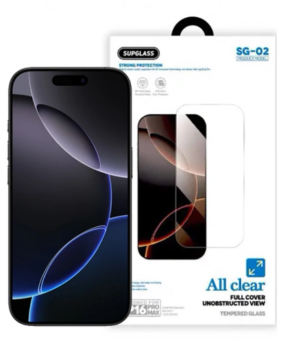 Защитное стекло SupGlass для iPhone 16 Pro Max Tempered Glass Super Hardness All clear 3D SG-02, Безрамочное